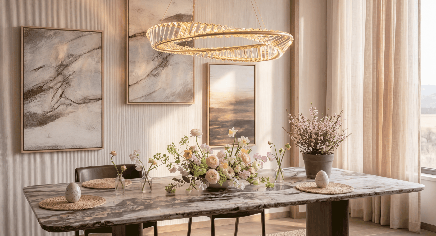 Весной такие светильники особенно хорошо работают в пространстве. Они усиливают естественный свет и добавляют интерьеру лёгкое праздничное настроение.