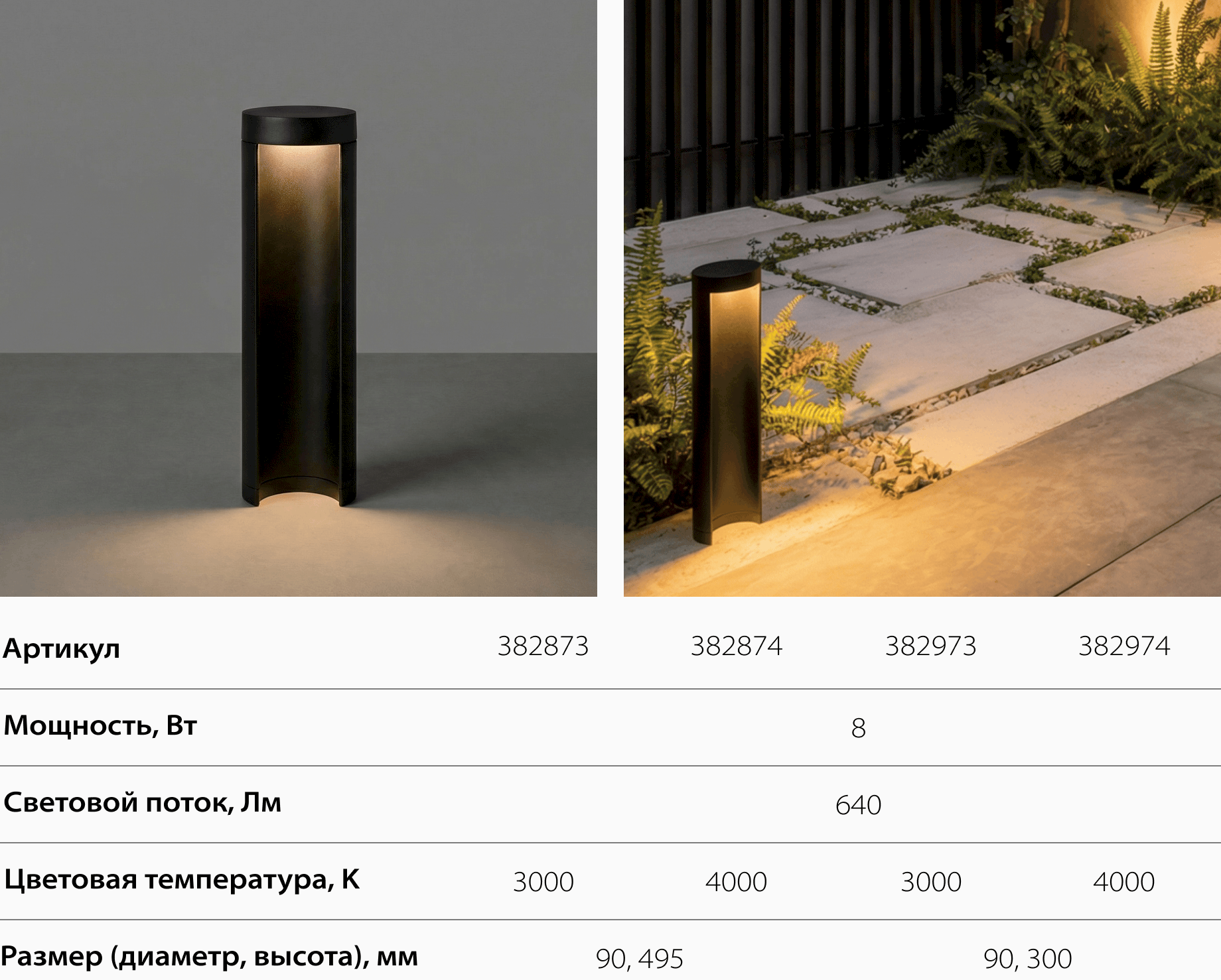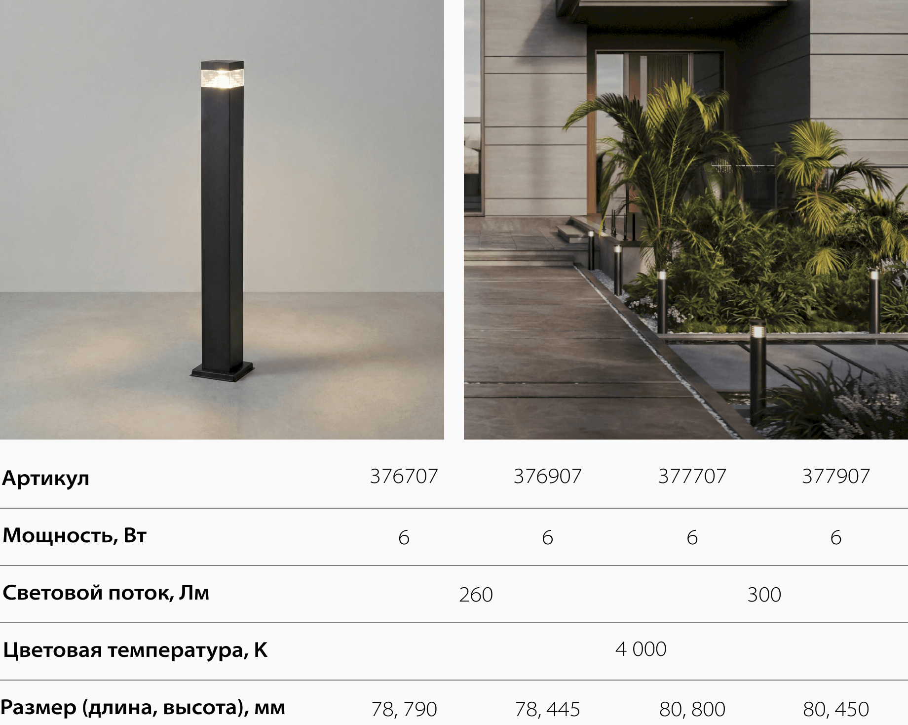 Серия также создана для деликатного освещения участка. Свет мягко обозначает дорожки и зоны отдыха, не превращая территорию в ярко освещённое пространство.